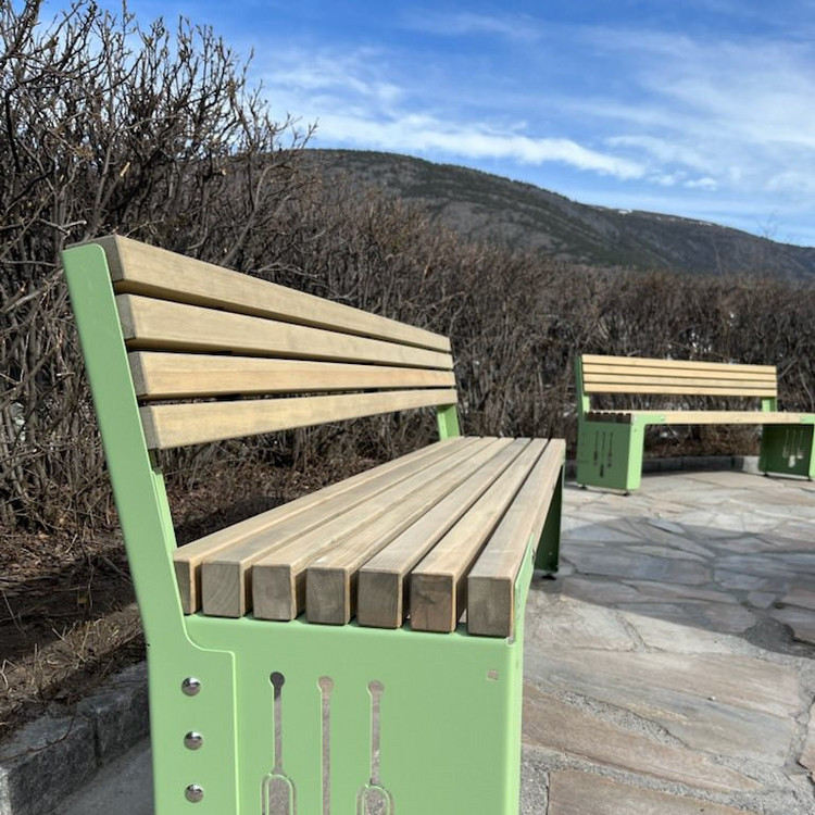 Lom kommune har kjøpt inn nye utemøblar, levert frå Rørosprodukter.